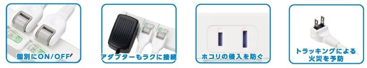 ●各差込口の電源を個別にON/OFFできる、節電に便利な個別スイッチ。