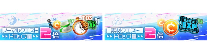 リリース記念育成ボーナスとして、ノーマルクエストや素材クエストで獲得できる経験値や素材のドロップ量が2倍!