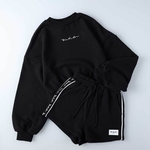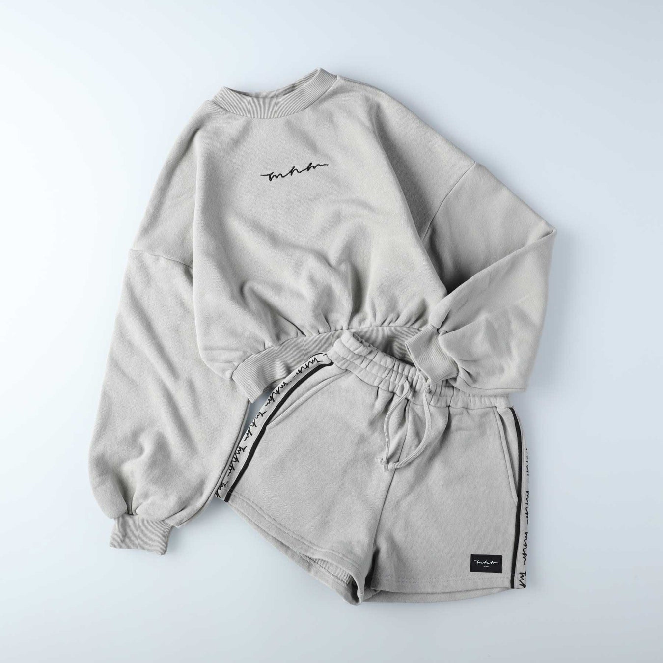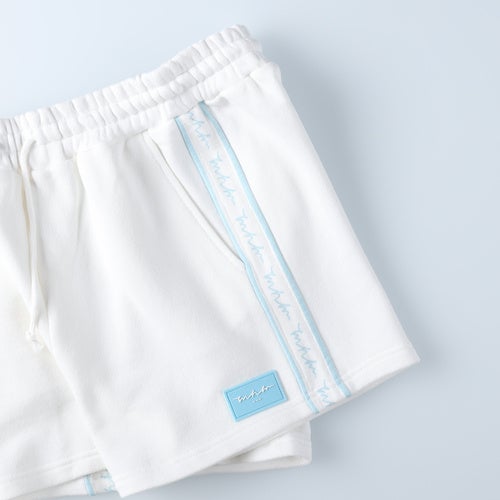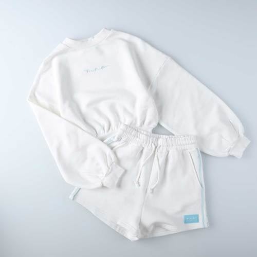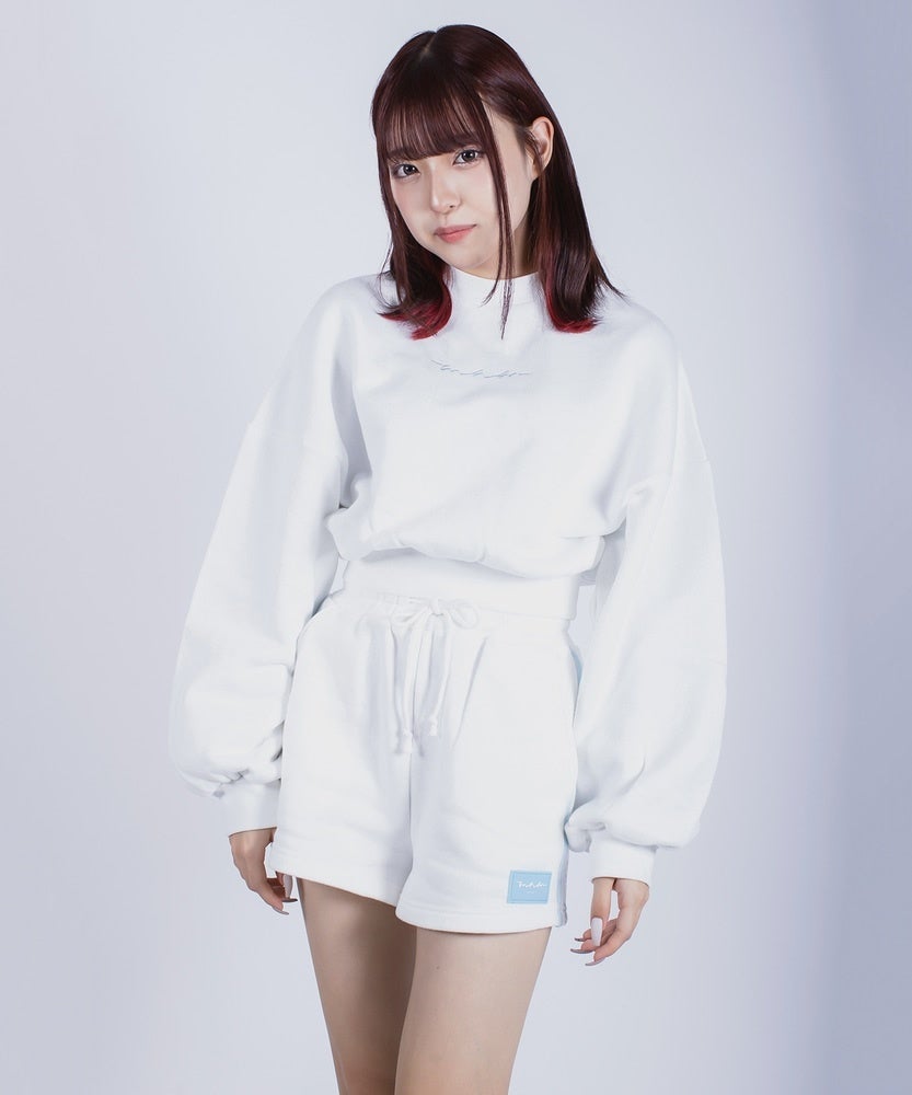 トレンドのショート丈に袖ボリュームデザインを施した特徴的なトップスと、脇にラインを施しラバーネームも付属するショーツが可愛らしいアイテムとなっています。