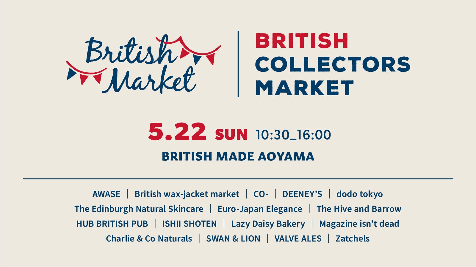 “日本で感じるイギリス”をコンセプトに、衣食住ありとあらゆるジャンルの日本各所の専門店が集う「ブリティッシュ・コレクターズ・マーケット」を2022年5月22日(日)ブリティッシュメイド 青山本店で開催します。