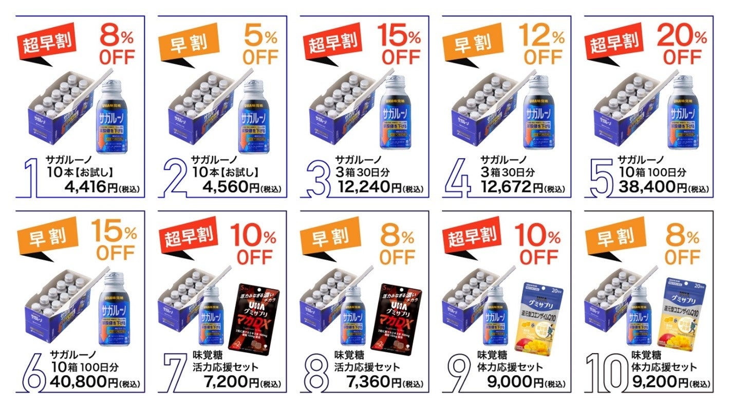 体力応援セット:毎日元気に過ごしたい方におすすめの「UHAグミサプリ 還元型コエンザイムQ10」20日分×2袋と「サガルーノ」10本のセット
