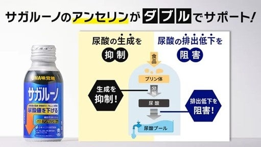 ・「サガルーノ」に含まれるアンセリンは、ダブルの作用機序で、尿酸値を下げる機能が報告されています。