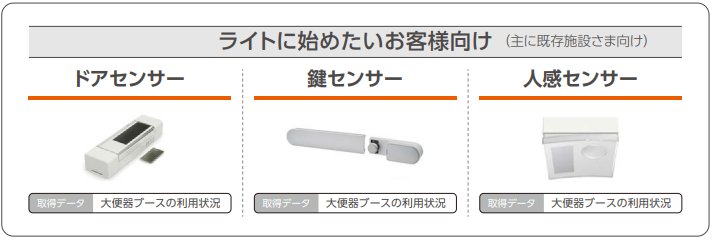 さらに今回発表された対応機種の追加により、大便器ブースのみならず、小便器や洗面の利用回数をカウントすることで、より効率的な清掃方法をご提案します。