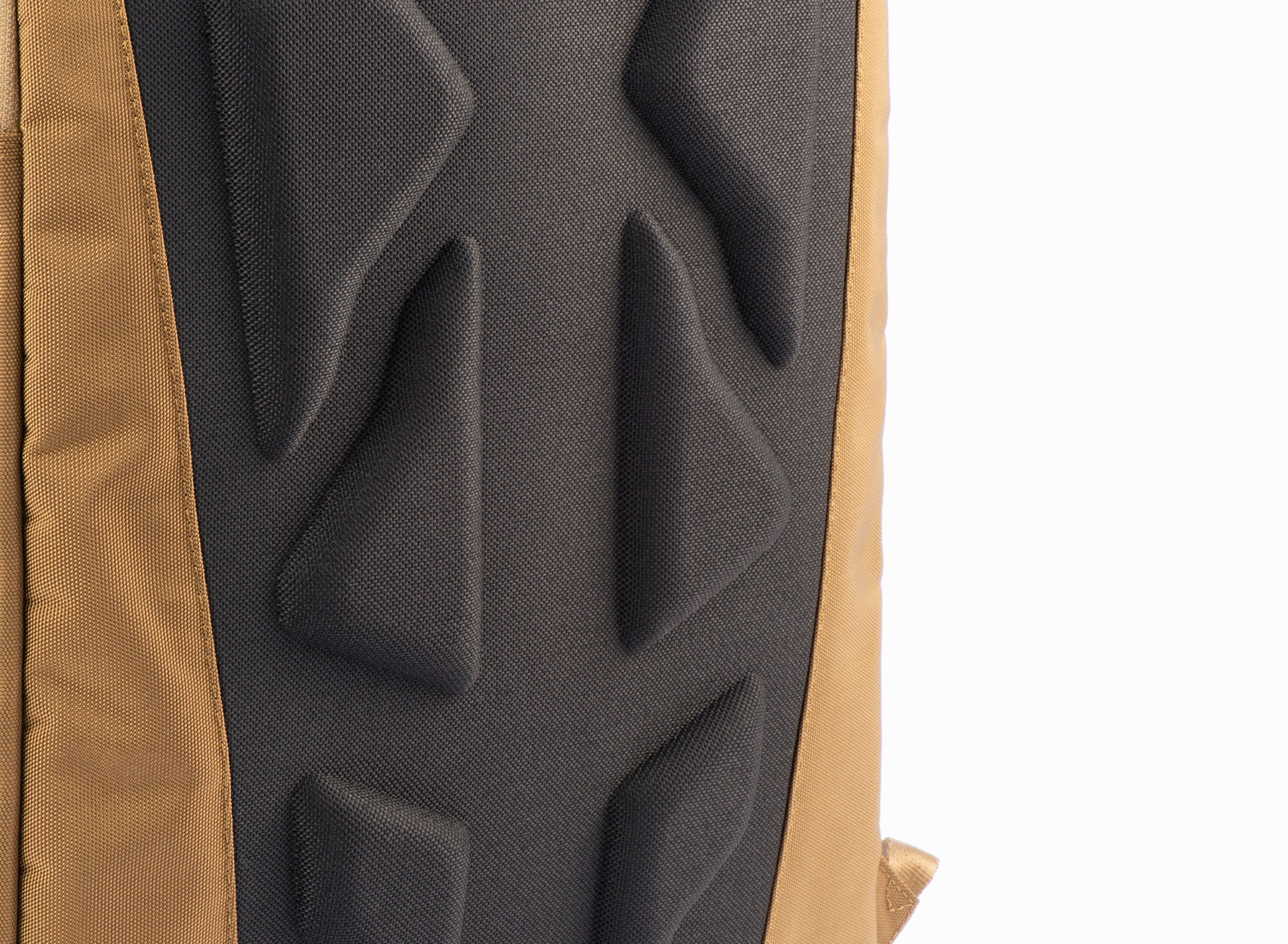 リュック型の背面に凹凸のあるクッション材を使用することで、荷重を分散するとともに空気の通り道を確保し、放熱性を向上させることで背中の蒸れを軽減するエアベンチレーション構造を採用しています。