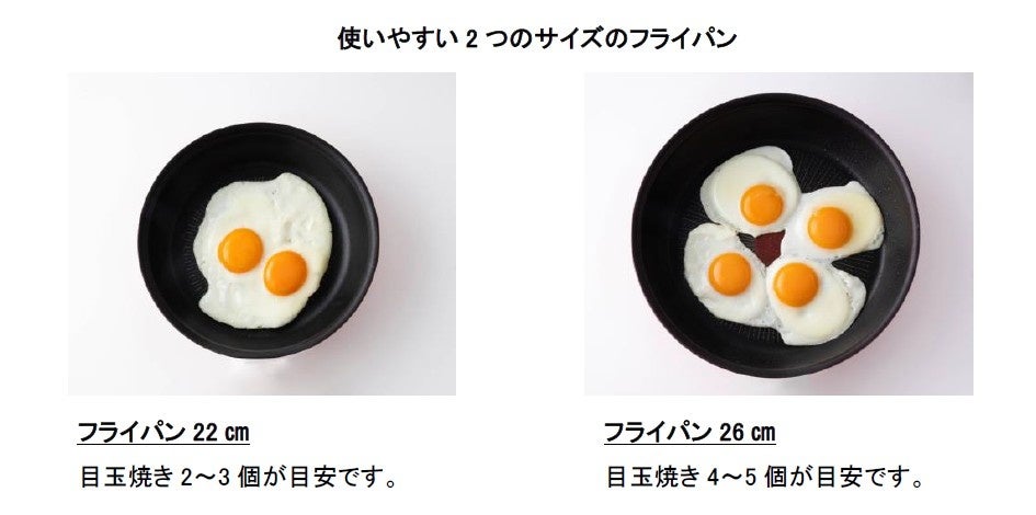 インジニオ・ネオ「セット3」は、毎日の料理に使いやすいフライパンが大・小1個ずつと専用取っ手が1本の3点セットで、初めて「取っ手のとれるフライパン・鍋」シリーズを揃える方にとってトライアルしやすいセットになっています。フライパンは最も人気の2サイズを採用し、小ぶりのフライパン22cmは、朝ごはんの目玉焼きなどにぴったりなサイズ。また、フライパン26cmは家族分のおかずをたっぷり作るのに適したサイズです。