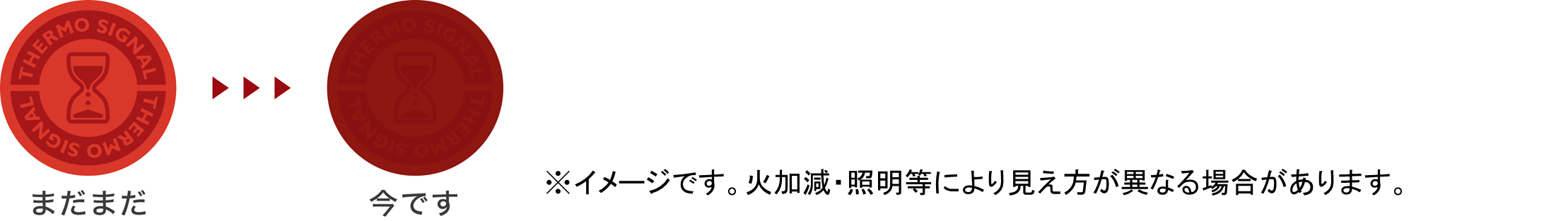 フライパンが温まり、「お知らせマーク」の模様が消えたら予熱が完了した合図です。
