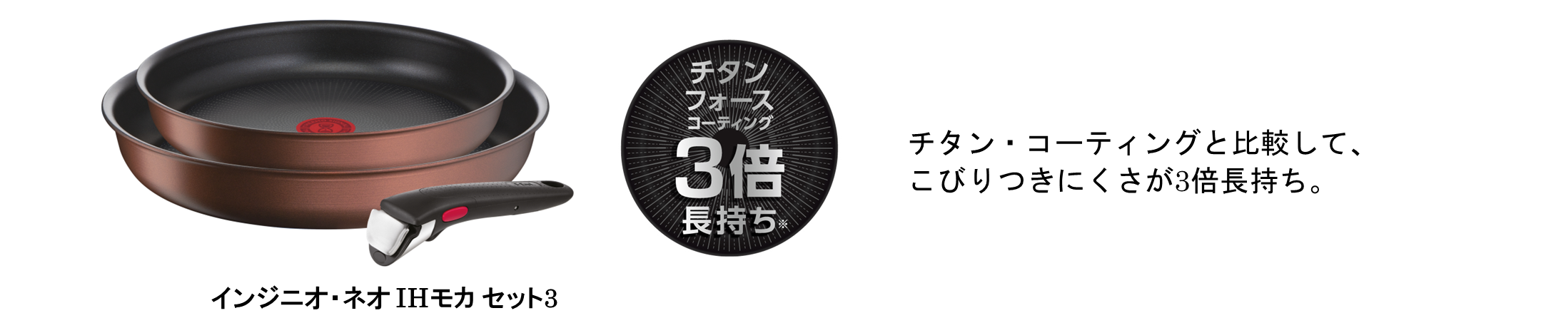 チタン粒子を配合したコーティングを採用し、こびりつきにくさが長持ちします。