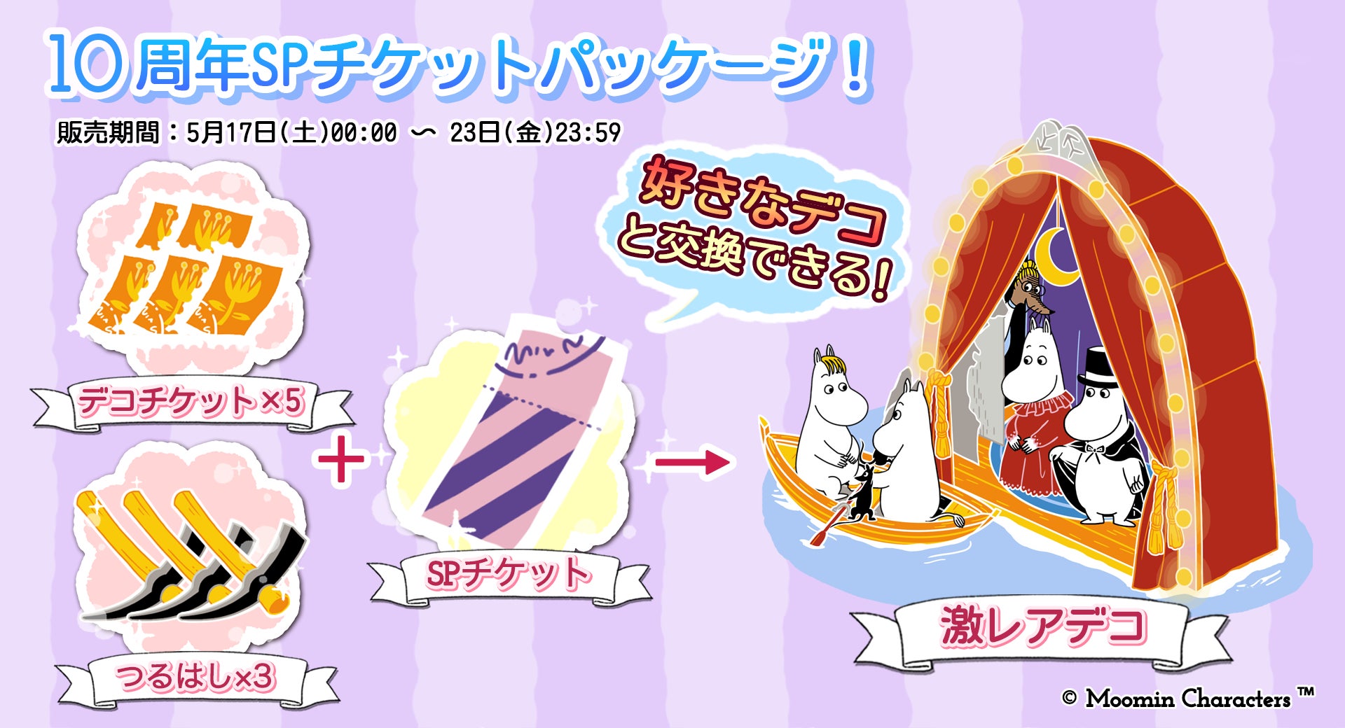 好きなレア広場デコと交換できるチケットがもらえる特別なパッケージだよ♪
