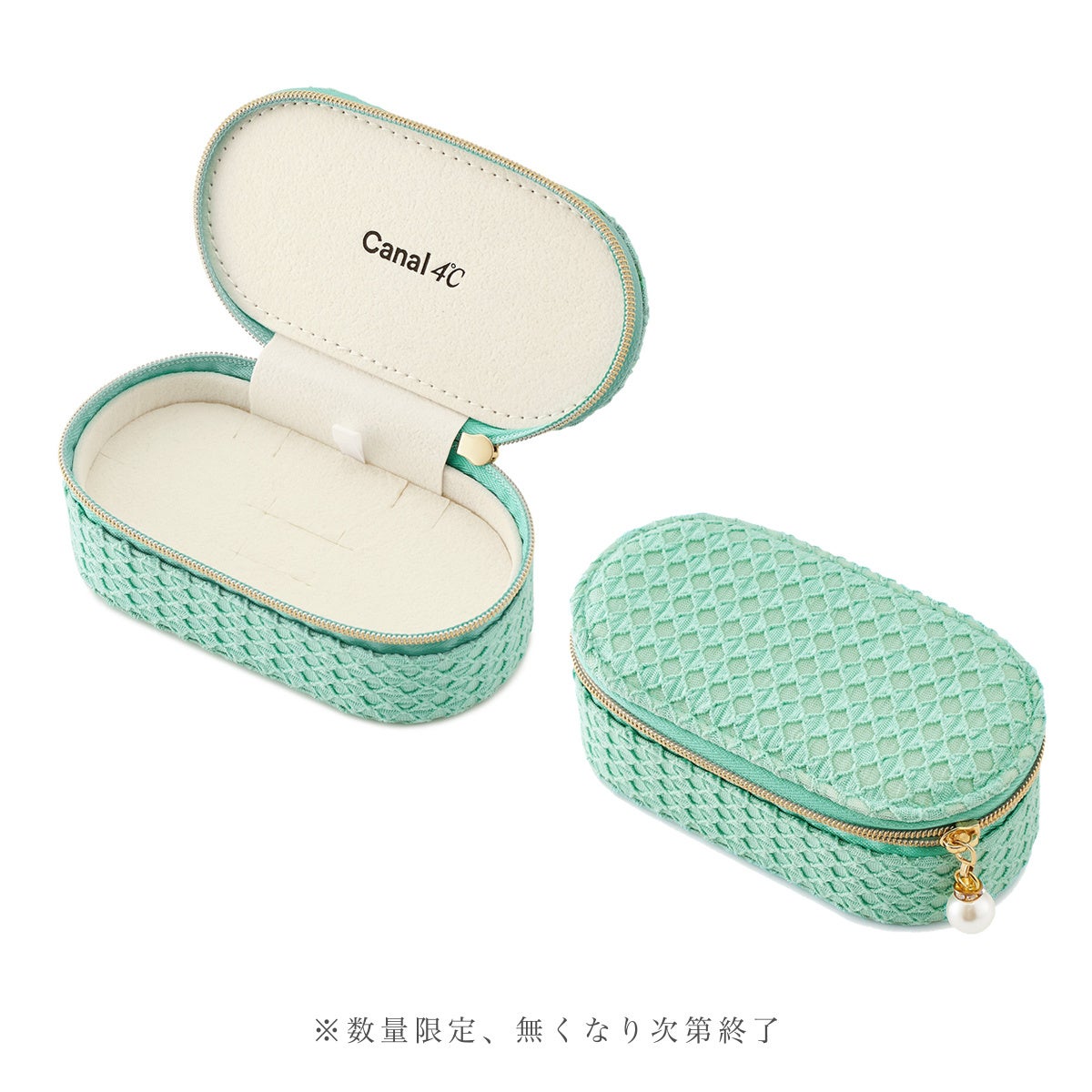 エメラルドグリーンの海をイメージした、リラックス感のあるサマーニット生地のジュエリーケースにお入れしてお渡しいたします。