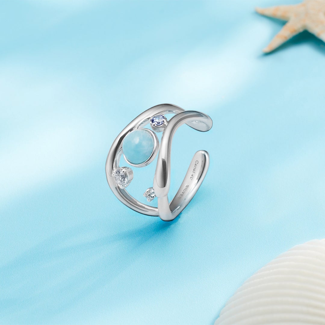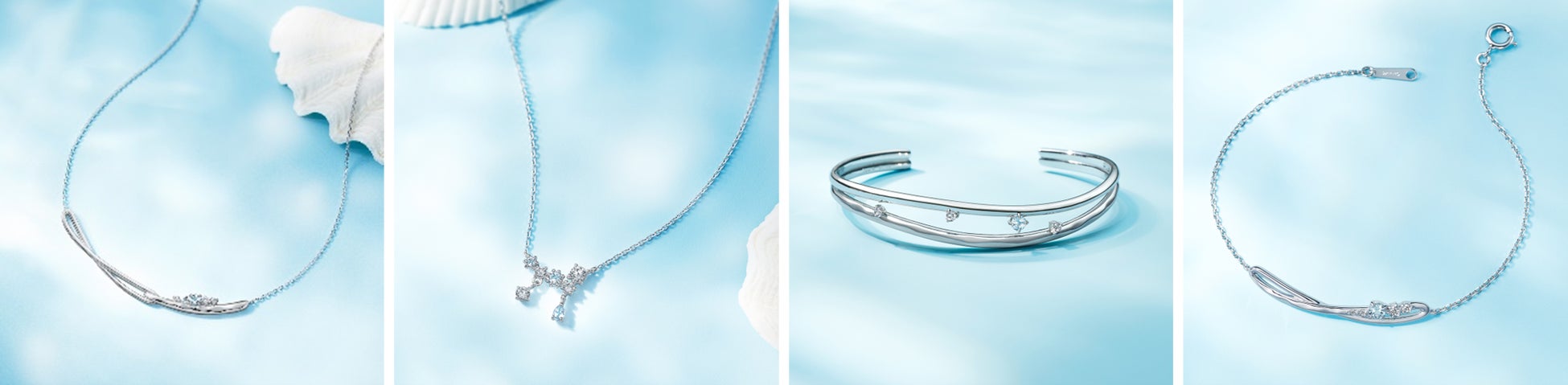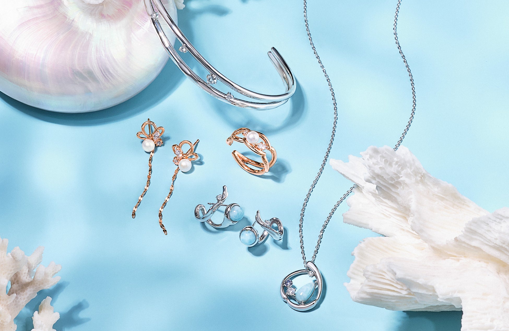 世界三大ヒーリングストーンと言われるラリマーをあしらい、シルバーカラーの地金でさわやかにまとめあげたネックレスのほか、富や幸運といった石言葉を持つブルートパーズをポイントに留めたバングル、ブレスレットなど、夏らしい涼やかなトーンのジュエリーが揃います。さらに海辺の動物、風景をモチーフに落とし込んだCanal4℃らしいキャッチーなアイテムも登場します。