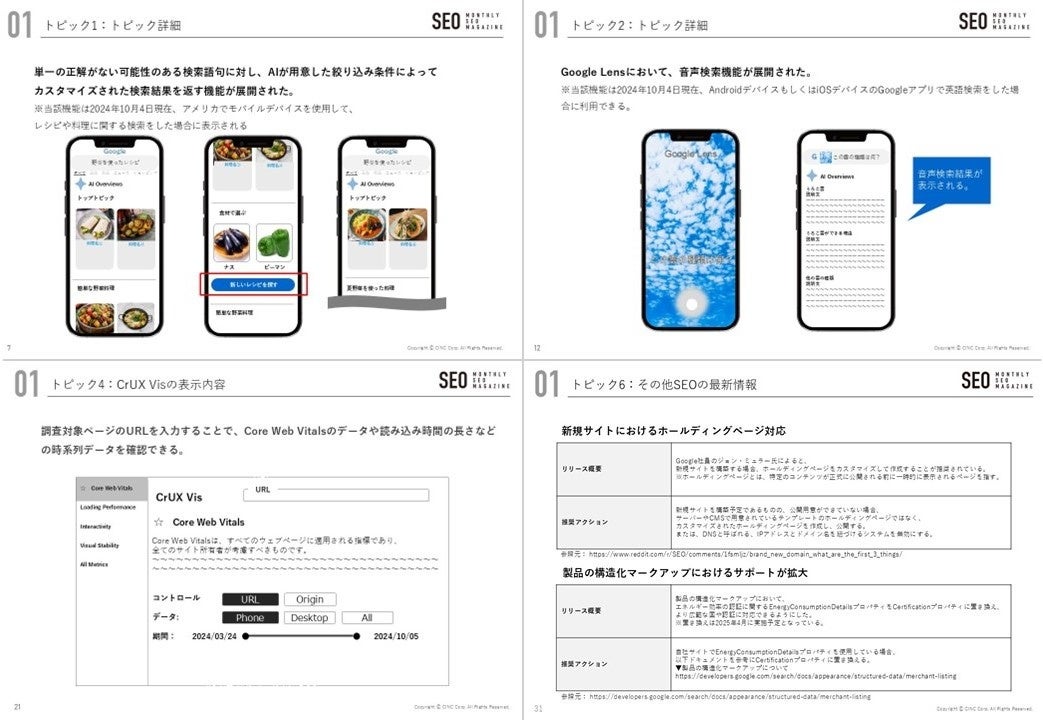 10月号の月刊SEOでは、主にGoogleからのリリース情報をピックアップし解説するとともに推奨アクションを記載しています。