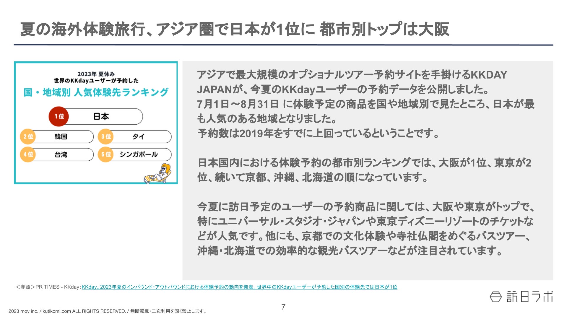 夏の海外体験旅行、アジア圏で日本が1位に 都市別トップは大阪 / 6月の訪日外客数 コロナ後初「200万人」突破 ほか