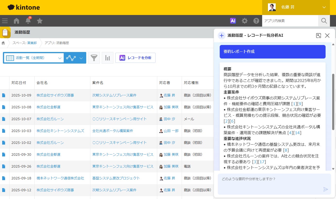 レコード一覧分析AI(10月12日提供開始):