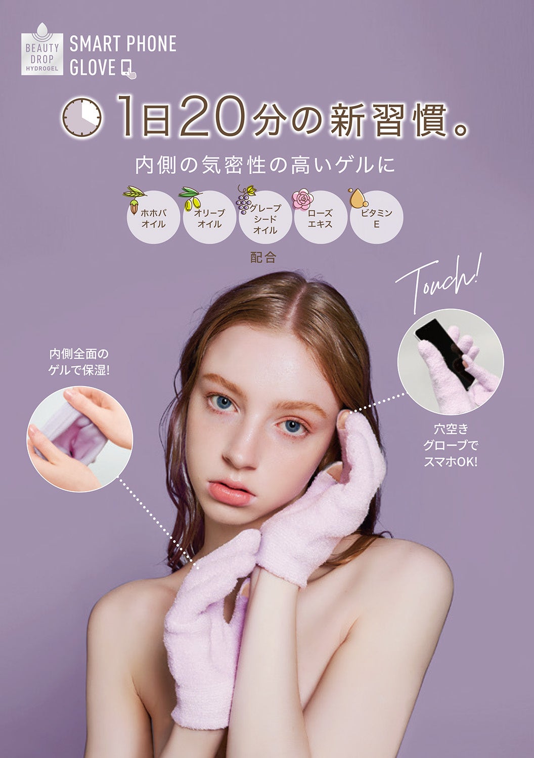 1日20分着けるだけ!気密性の高いゲルで保湿「BeautyDrop ハイドロゲルスマホグローブ」を10月2日発売