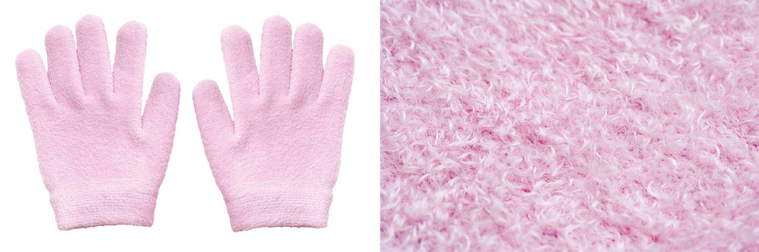 内側の全面ゲルには、オリーブオイル・ホホバオイル・グレープシードオイル・ビタミンE・ローズエキスを配合。着けている間にもスマホを触れるよう親指と人差し指が穴あきになっているので、スマホをしながら、テレビをみながら、お家でゆっくりしている間に着けておくだけで、乾燥しがちな手元をしっかり保湿してくれます。