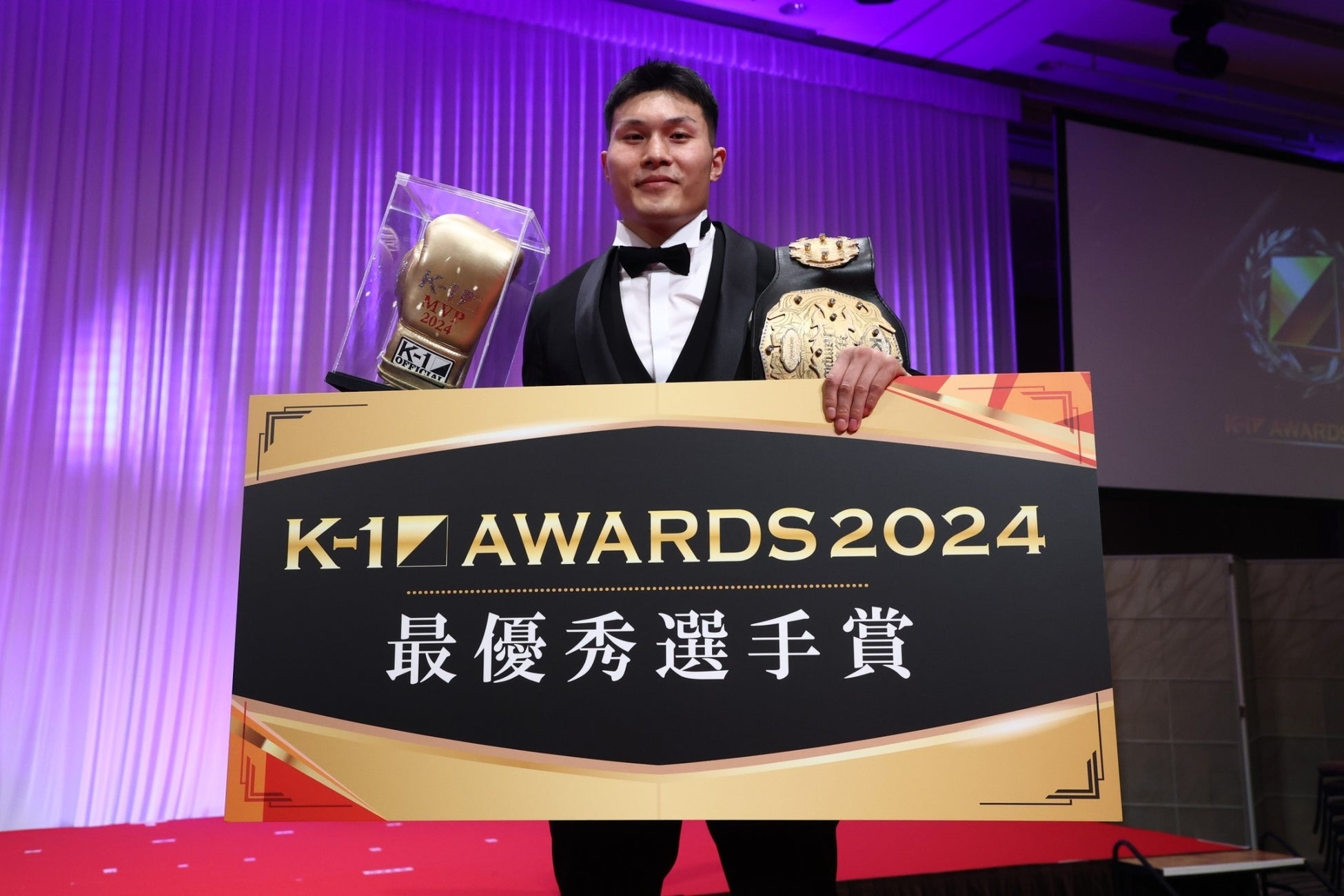 「僕自身、たくさんのメディアに出ていきたいなと思い実践していき、このような賞をいただきました。勝ちも負けも経験しましたが、僕がK-1を広めるために頑張っていきたいと思います」