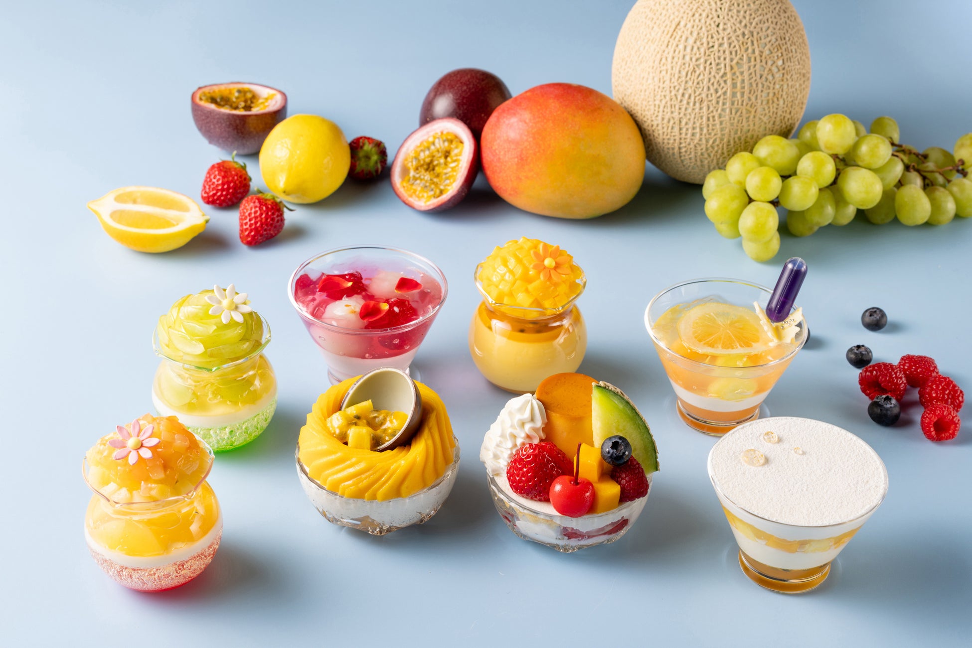 「フィオレンティーナ ペストリーブティック」にて、毎年ご好評をいただいているサマーフルーツを贅沢に使用する夏限定のベリーヌ(グラススイーツ)を、今年は8種類ご用意いたします。新作では、パッションフルーツに見立てたチョコレートと、美しく折り重ねるマンゴーのデコレーションが目を引くエキゾチックな味わいのティラミスや、スポイトに入れたバタフライピーシロップをかけると美しい紫へと色が変化する、ハニーレモンとメロンの爽やかなゼリーなどが登場。さらに、みずみずしいピーチやシャインマスカットに、フレッシュチーズとスパークリングワインのゼリーを合わせる宝石のようにきらめく夏の定番ベリーヌや、昭和レトロなプリンアラモードを今年もご用意いたします。世界の製菓大会で優勝・受賞経歴を持つパティシエを輩出してきたペストリーチームの技が光る、涼やかなグラススイーツは夏の帰省土産やギフトにも最適です。