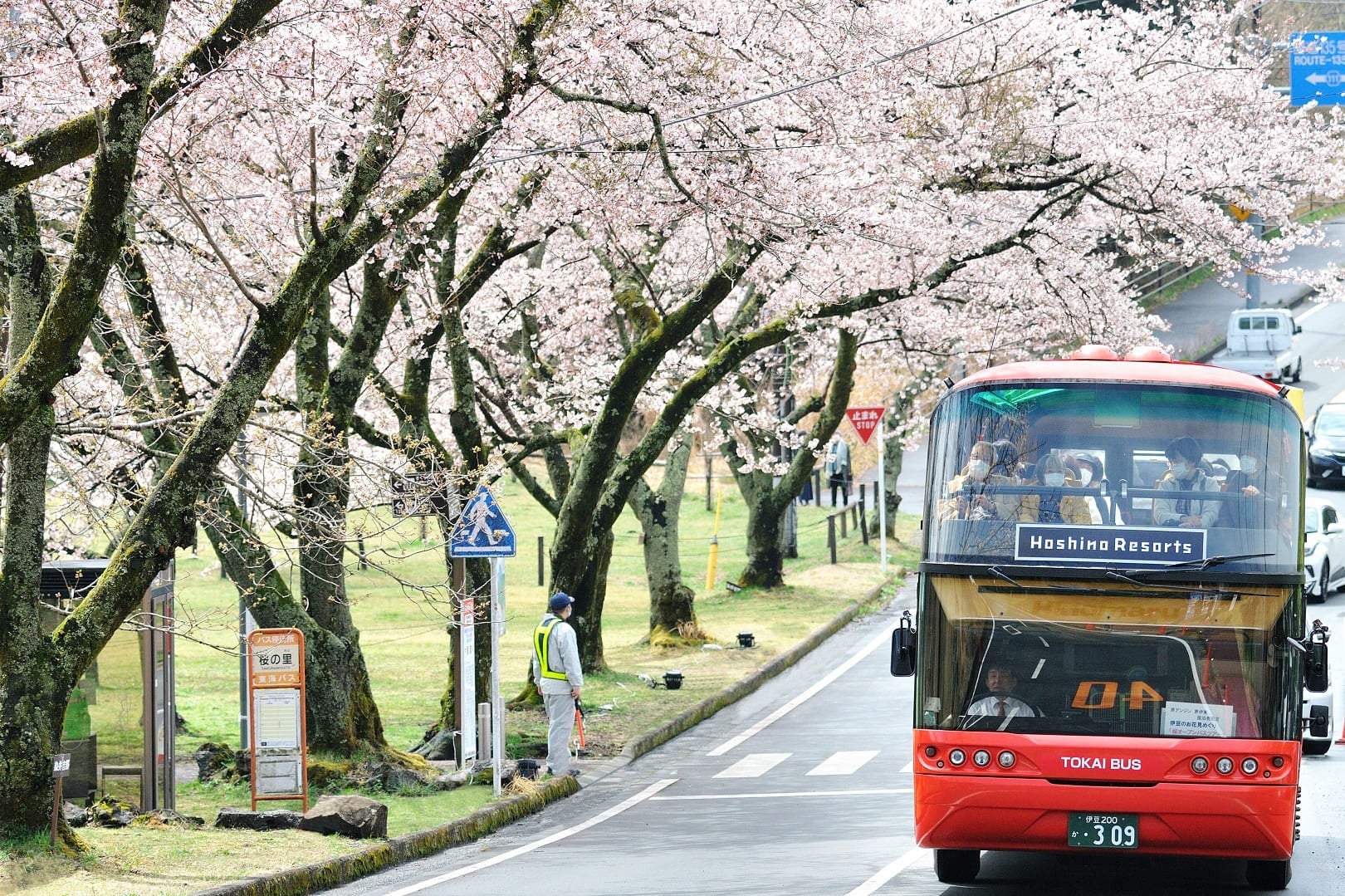 界 アンジン、界 伊東の位置する伊豆エリアでは、四季を通して美しい花々が咲き誇ります。温泉旅館ブランド「界」では、季節の移ろいや地域の風情を取り込みながら旅を楽しむ提案をしてきました。その中で、開放的なオープンエアで、頭上間近に迫る桜を愛でるバスツアーを2022年より実施しています。オープンエアのバスを使ったツアー「スカイバス東京」を展開する、日の丸自動車興業株式会社(所在地:東京都文京区 代表取締役副社長:富田哲史)と、運行会社の株式会社東海バス(所在地:静岡県伊東市 代表取締役社長:眞野大輔)と界が連携し、伊豆の桜を巡るルートを考案しました。桜を見るだけで終わらせずより楽しむために、東海バスと界のスタッフが「桜バスガイド」として同乗し、伊豆や桜の知識を語ります。今年から新たに、桜の名所「さくらの里」で楽しむ界のオリジナル「お花見てまり寿司弁当」と、ツアー終了後に界 伊東の大浴場で温泉に浸かりながらお花見ができる「花見温泉」を用意しました。伊豆の春を感じながら、温泉旅館ブランド「界」ならではのお花見を体験してほしいという思いから、当ツアーを開催します。