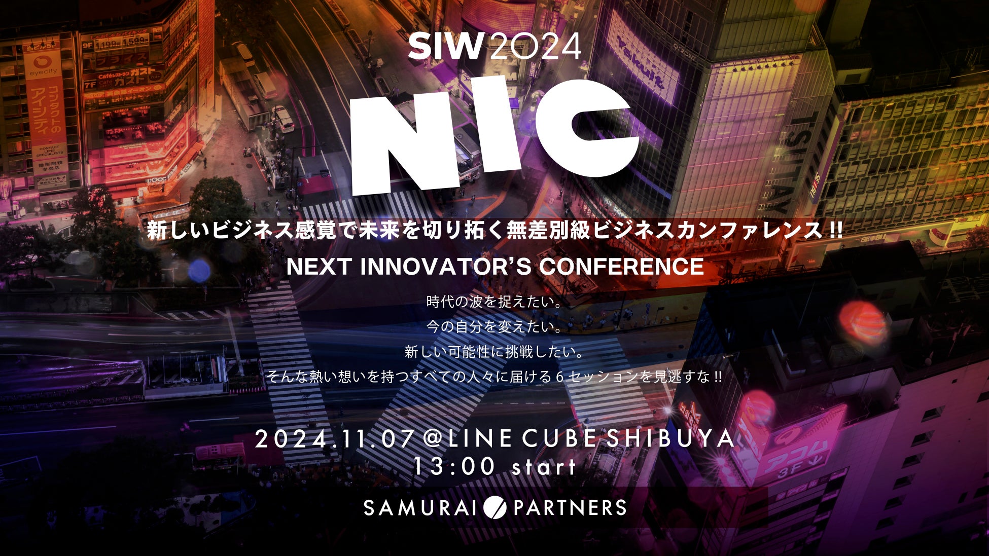 このたびSIW2024の連携イベントとして、株式会社サムライパートナーズと渋谷未来デザインが開催する、無差別級ビジネスカンファレンス「NEXT INNOVATOR’S CONFERENCE」のプログラムを発表しました。