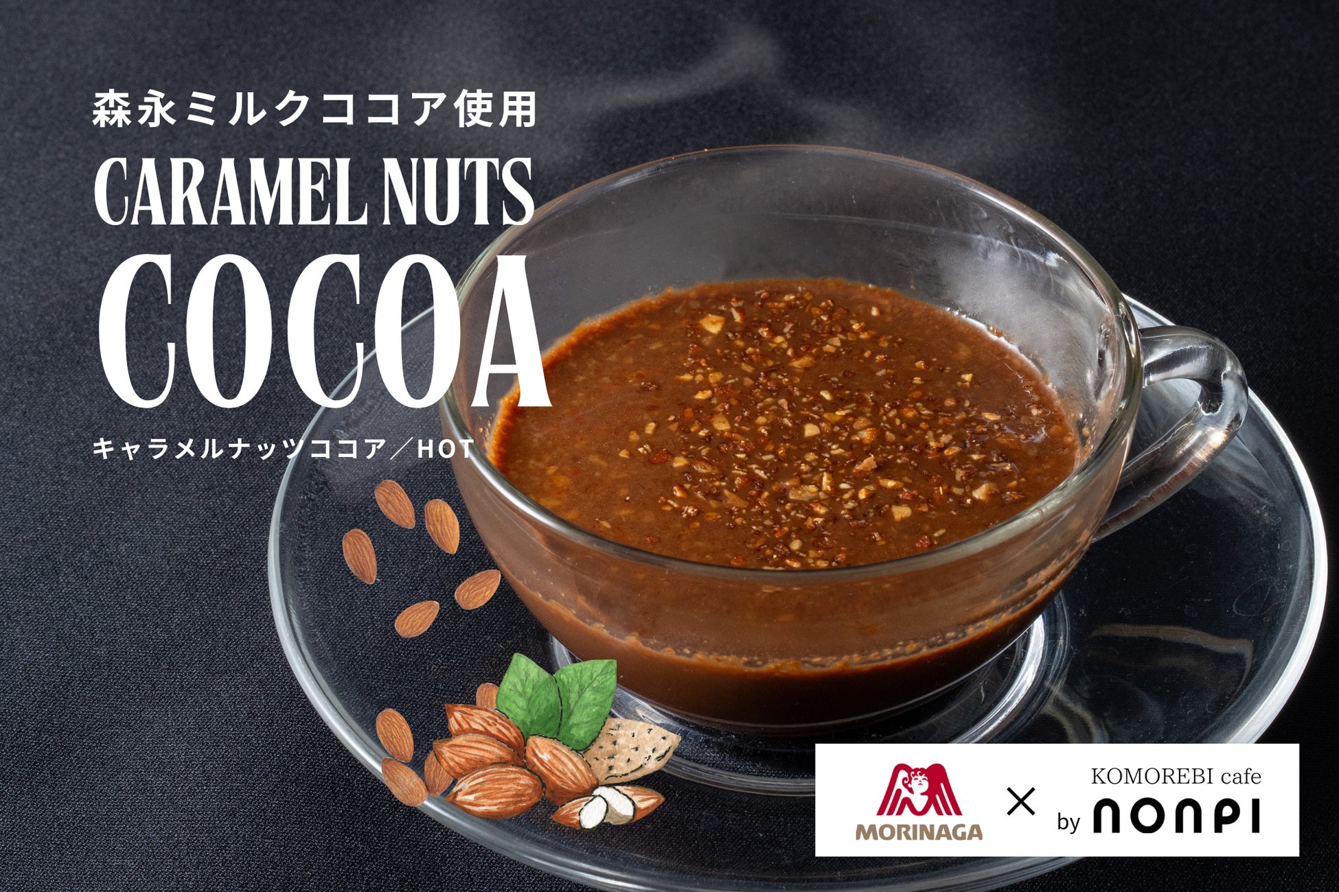 株式会社ノンピ(本社:東京都千代田区、代表取締役社長 :上形秀一郎 以下ノンピ)は、森永製菓株式会社(本社:東京都港区、代表取締役社長 :太田 栄二郎 以下森永製菓)のオフィスビル内カフェ「KOMOREBI cafe」にて冬季限定オリジナルドリンクの「キャラメルナッツココア」を2024年12月16日(月)から2025年1月31日(金)まで販売いたします。