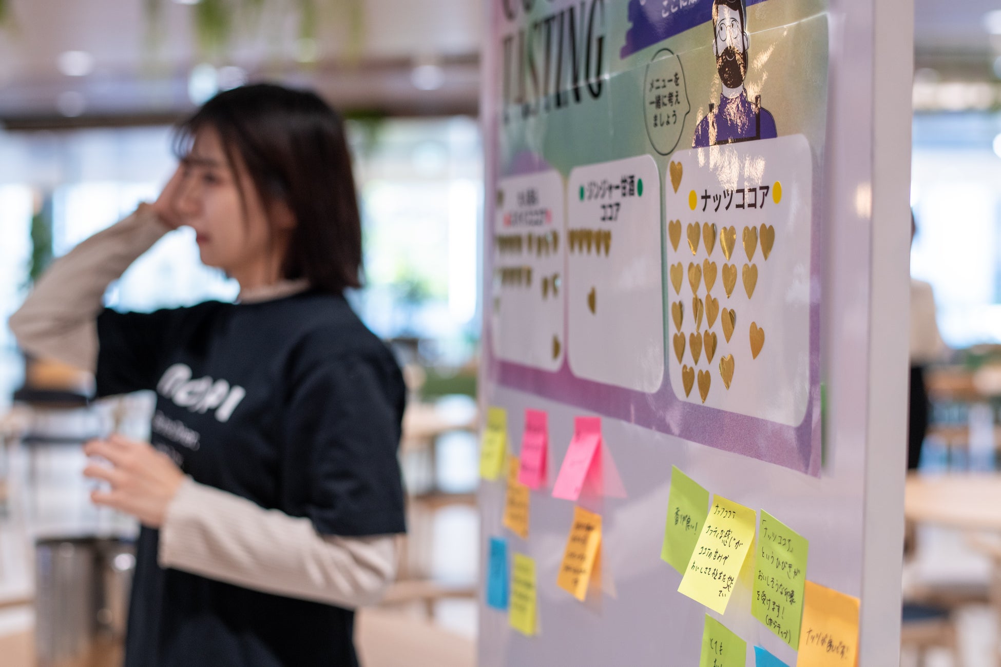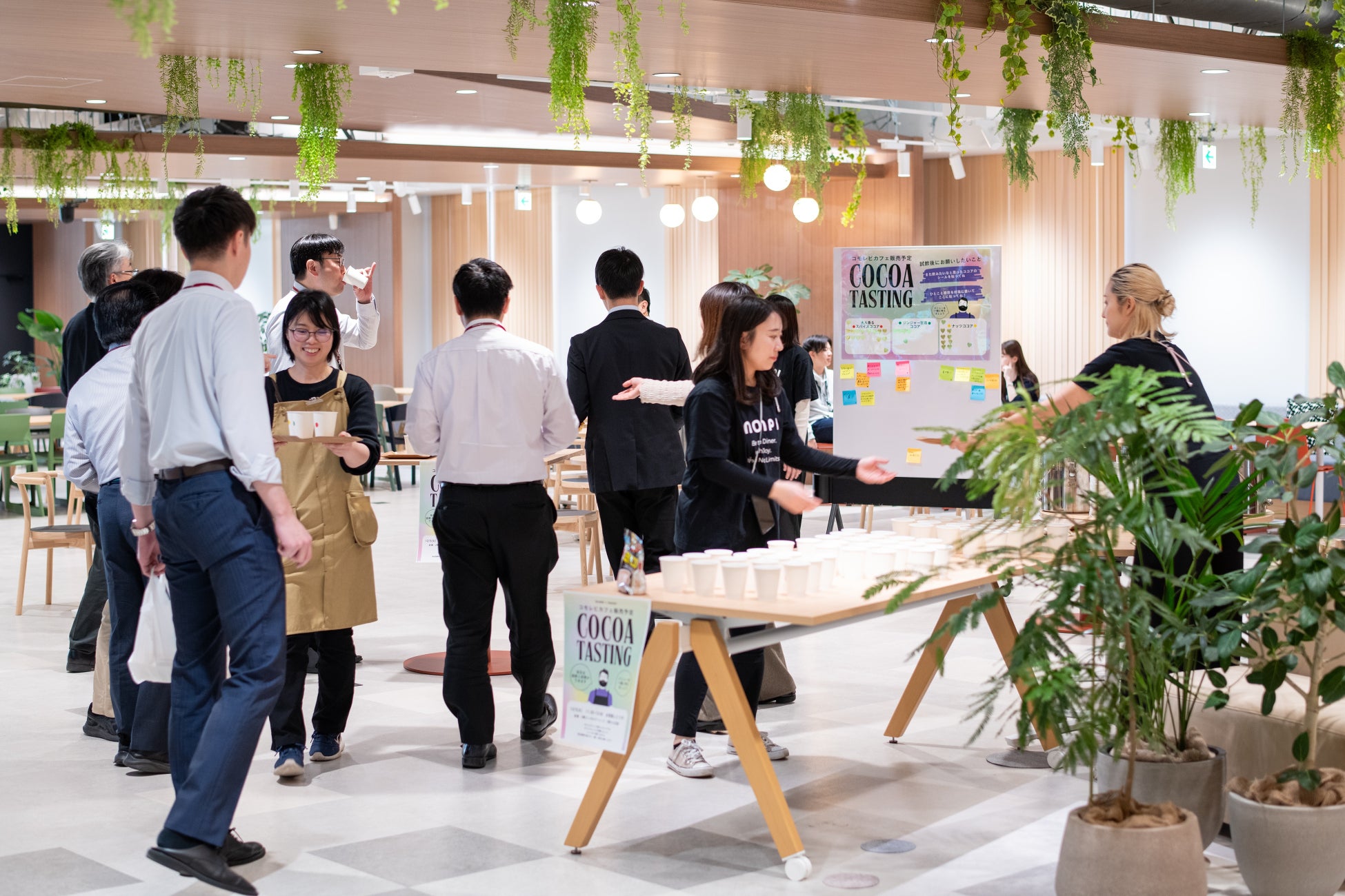 試飲会では、合計130名の森永製菓社員の皆様にご参加いただき、ノンピが開発した3種のオリジナルココアを飲み比べていただきました。1人2票ずつ投票していただいた結果、「キャラメルナッツココア」に決定いたしました。