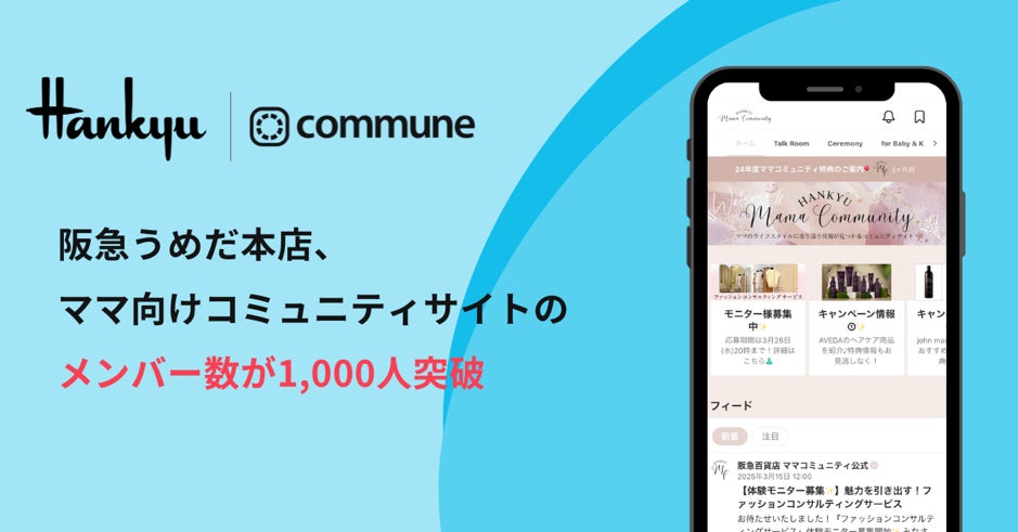 コミュニティサクセスプラットフォーム「Commune(コミューン)」を提供するコミューン株式会社は、阪急うめだ本店のオンラインコミュニティ「HANKYU Mama Community」のメンバー数が1,000人を突破したことをお知らせします。