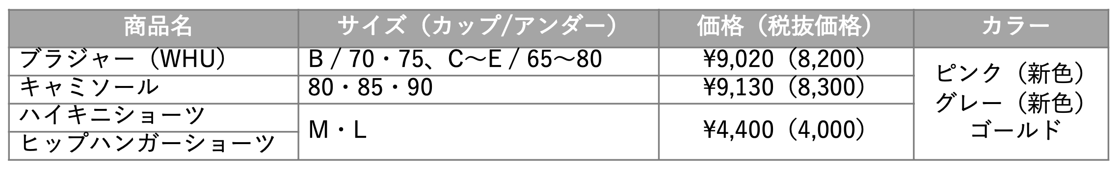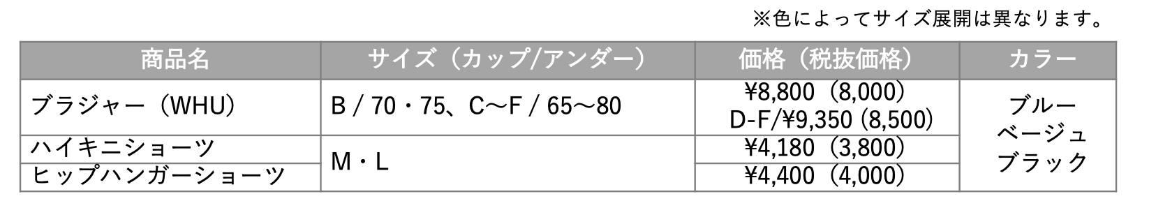 ブラジャー(WHU)は、クッション性のある柔らかなパッドを使用。自然な丸みをメイクしながら、脇はしっかりサポートしてスリムに魅せます。