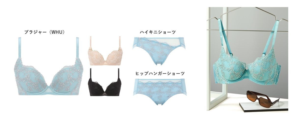 ブラジャー(WHU)はナチュラルなシルエットと軽い着用感が特長ながら、取り外し可能なパッド入りでボリュームアップも叶えます。