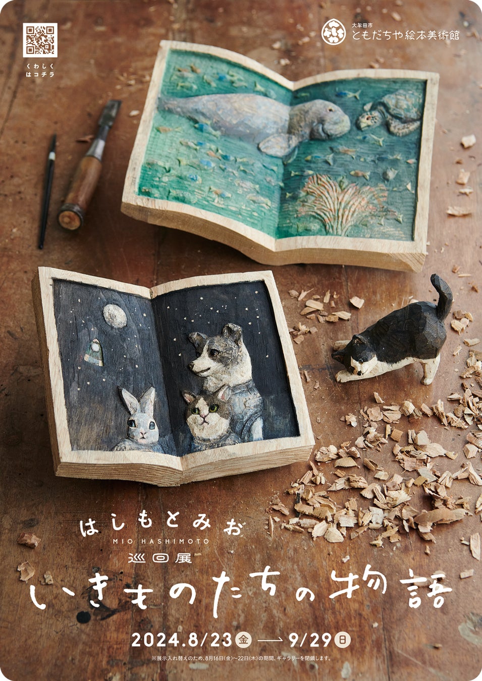 令和6年8月23日(金)から、動物の木彫りの彫刻家・はしもとみおさんの巡回展をともだちや絵本美術館で開催します。