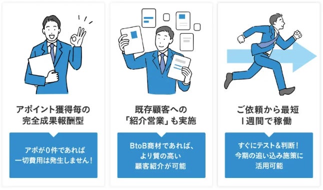 1.アポイント獲得毎の完全成果報酬型 :アポが0件であれば一切費用は発生しません!