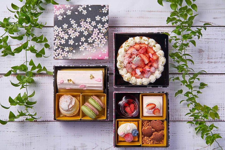 「SWEETS BOX」はニューノーマル時代の高まるテイクアウト需要に対応し“季節の重箱シリーズ”として2021年1月より定期的に販売をしている商品です。季節毎のテーマにあわせたパティシエの遊び心や、旬の食材を取り入れた内容で好評をいただいており、今回は第7弾目となります。「ご自宅でもホテルメイドの味を楽しみながら春の訪れを感じていただけるように」と、春の香り漂う桜フレーバーや旬の苺をたっぷりと味わえるスイーツを8種類詰め込みました。出会いと旅立ちの節目の季節に、大切な方への贈りものとして、また、ご家族やご友人とのホームパーティーでピクニック気分をお楽しみいただくのもお勧めです。