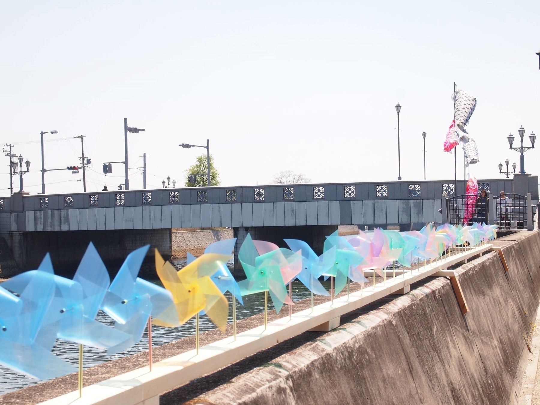 4月15日(土)は半田運河で風車づくりのワークショップを開催。参加者によってつくられた風車が運河沿いを彩ります。風を受けてまわる風車はフォトスポットとしても人気です。