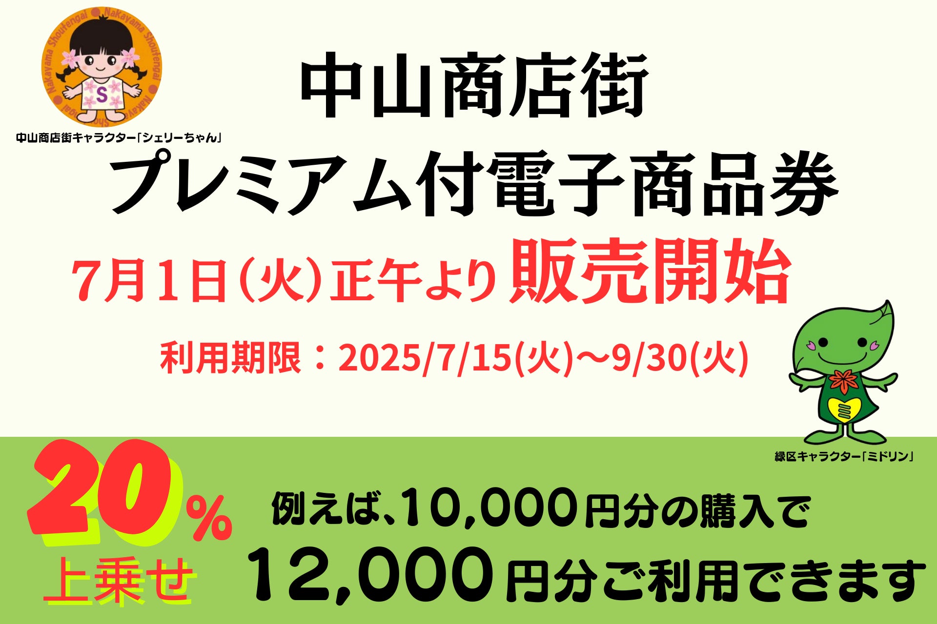 20%プレミアム付き!中山商店街で利用できるプレミアム商品券を7月1日より販売開始