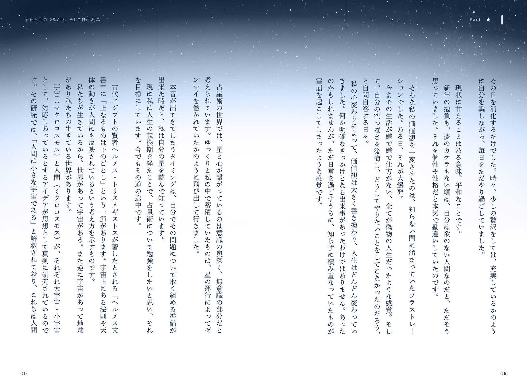 現在は鑑定にとどまらず、執筆、イベント出演、占い館のプロデュースなど活動の幅を広げている。SNSで発信する星のメッセージは多くの共感を呼び、総フォロワー5万人超。運命と自由の可能性を探求し続ける、新進気鋭の占星術師。
