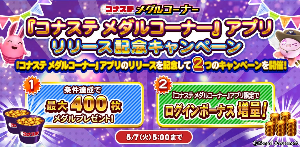 株式会社コナミアミューズメントは、iOSおよびAndroidにて配信しているモバイルゲーム『コナステ メダルコーナー』についてお知らせします。