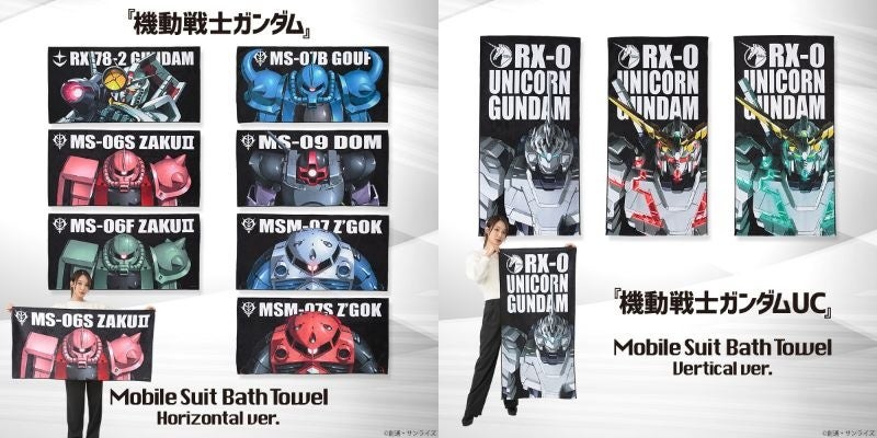 『機動戦士ガンダム』『機動戦士ガンダムUC』モビルスーツを全面的にデザインした迫力満点のバスタオルが登場!