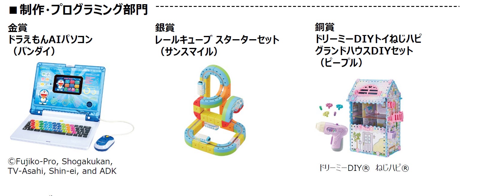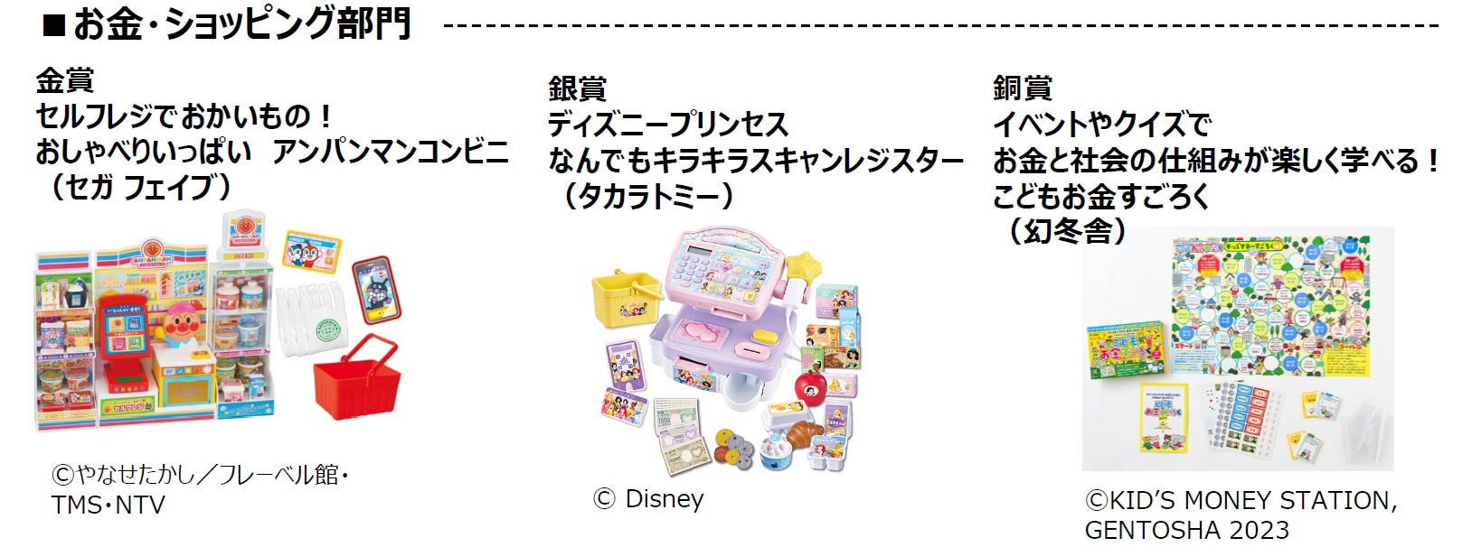 2024年の受賞ラインアップは、「今どき感」がある商品として、「制作・プログラミング部門」で、AIを活用したパソコン型玩具や、USB充電可能なSTEAM玩具などが受賞。「お金・ショッピング部門」では、セルフレジやキャッシュレス決済を疑似体験できる玩具に人気が集まりました。