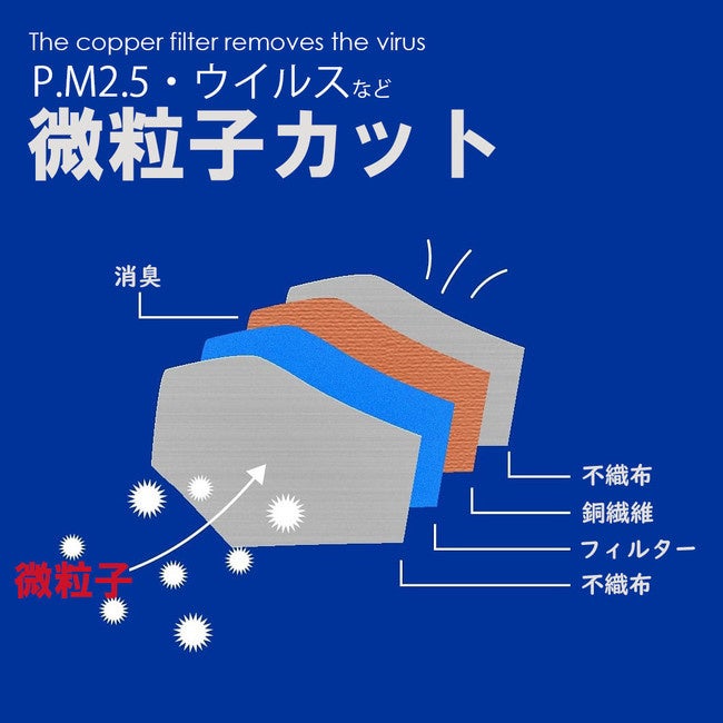 そんな魅力を秘めた抗菌力のある銅繊維を用い、口紅などを塗る女性にも優しい人体工学的な3D設計の立体型マスクです。