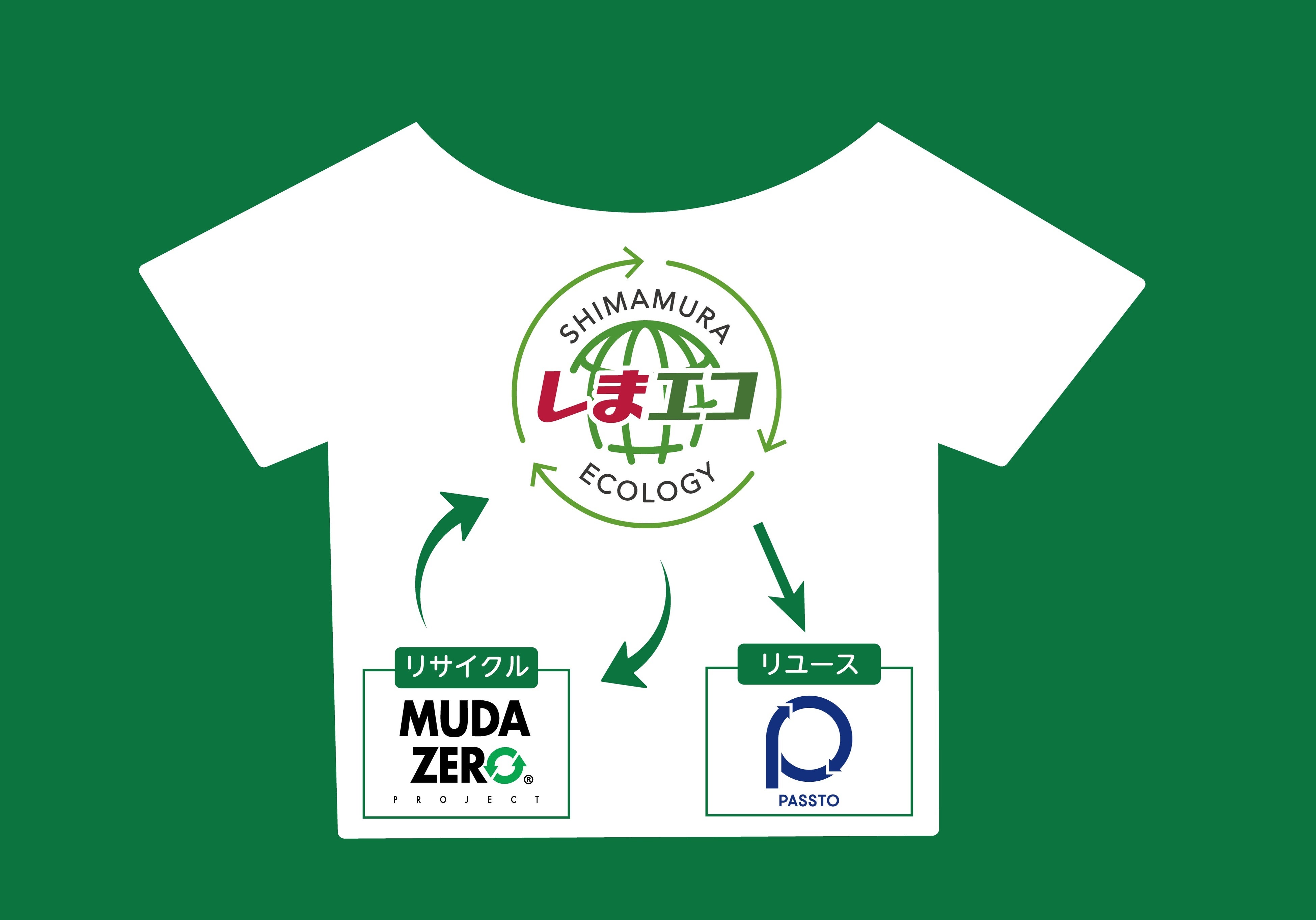 しまむらのサステナビリティ活動のうち、環境への取組みを「しまエコ」と名付け、ロゴマークを作りました。しまむらでは、ごみの削減や資源の再利用、環境に配慮した商品づくりなど、環境にとってサステナブルな活動を行っています。