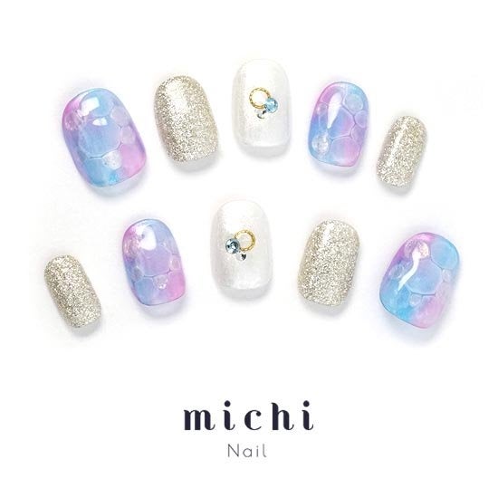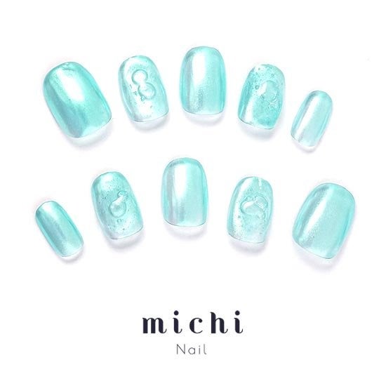 透け感のあるオーロラブルーのバブルネイル。海の中のような涼しげなデザインが夏らしいネイルチップです。流行りのバブルネイルに初挑戦の方にもおすすめな派手すぎないデザインが魅力です。