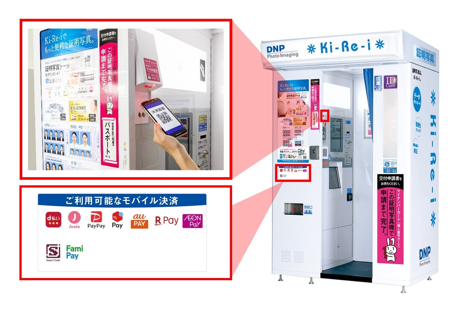 大日本印刷株式会社(DNP)は、キャッシュレス決済に対応した「DNPマルチペイメントサービス」の機能を拡張し、新たなコード決済手段として「AEON Pay(イオンペイ)*1」の提供を開始します。本機能の採用第一弾として、2月13日(月)に日本全国の証明写真機「Ki-Re-i」約4,900カ所で「AEON Pay」の利用を開始します。「AEON Pay」は、イオンフィナンシャルサービス株式会社とその子会社であるイオンクレジットサービス株式会社が提供するサービスで、証明写真機への導入は国内初となります。