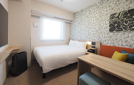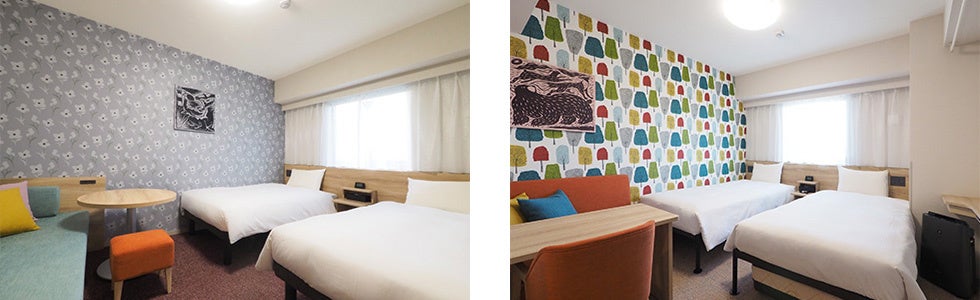 客室の7割以上を占めるダブルルームには、洗濯機・電子レンジ・2ドア冷蔵庫・加湿機能付き空気清浄機・50インチ以上のスマートTVを完備しています。さらに、IHコンロを備えたキッチン付きダブルルーム(15.7㎡~17.2㎡/ベッド幅150cm)もご用意しており、自炊しながらの滞在をサポートします。このほか、最大3名様でご利用いただける「スタンダードツインルーム」(約18.7㎡/ベッド幅110cm)や、「ユニバーサルダブルルーム」(約22.1㎡/ベッド幅110cm2台)もご用意し、ビジネスから観光、ファミリーでのご滞在まで、幅広いニーズにお応えします。