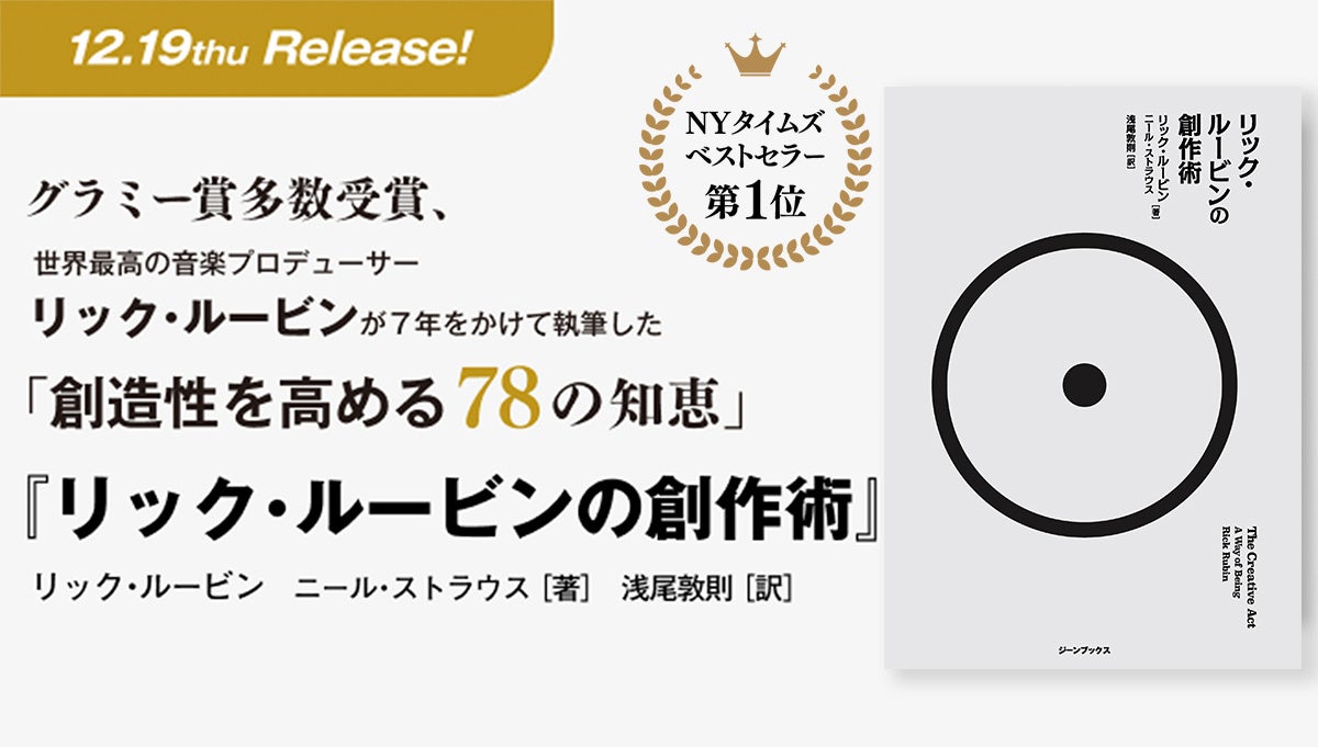 株式会社ジーン(本社:東京都港区南青山)は、世界25カ国で翻訳出版され、ニューヨーク・タイムズベストセラー第1位を獲得するなど話題を呼んだ、世界最高と名高い音楽プロデューサー、リック・ルービン氏の著作『リック・ルービンの創作術』(原題:『The Creative Act: A Way of Being』)をジーンブックスより12月19日(木)に発売いたします。