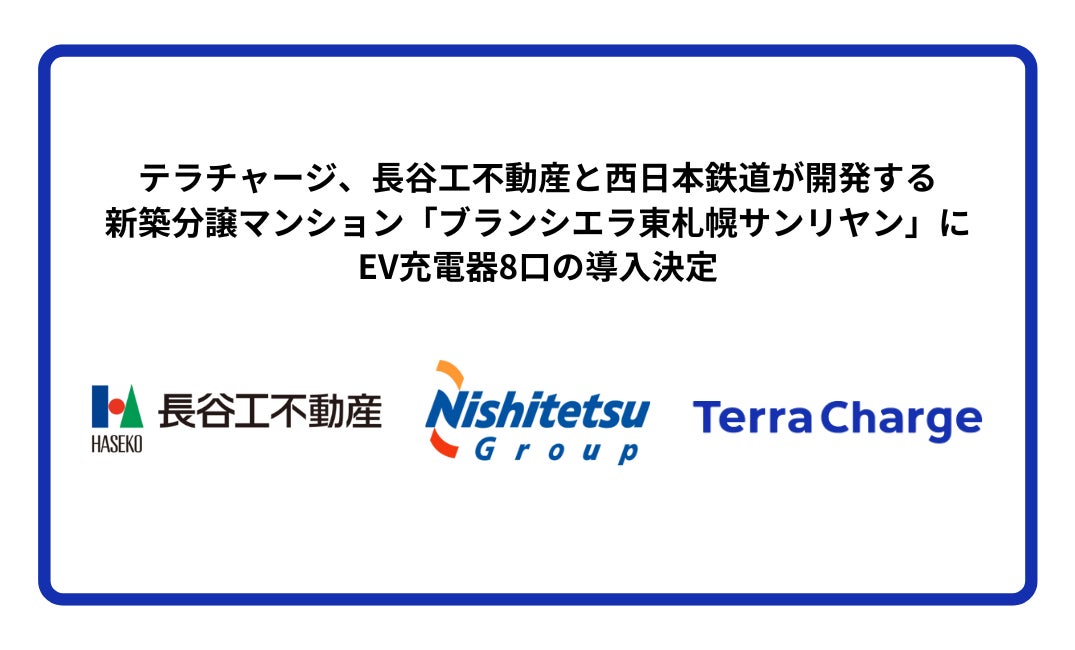 EV充電インフラ事業「Terra Charge(テラチャージ)」を展開するTerra Charge 株式会社(本社:東京都港区、代表取締役社長:徳重 徹、以下「当社」)は、株式会社長谷工不動産(本社:東京都港区、代表取締役社長:松本 健)と西日本鉄道株式会社(本社:福岡県福岡市、取締役社長執行役員:林田 浩一)が共同で開発する、新築分譲マンション「ブランシエラ東札幌サンリヤン(以下「本物件」)の駐車場に3kWのEV充電器8口の導入が決定したことをお知らせいたします。