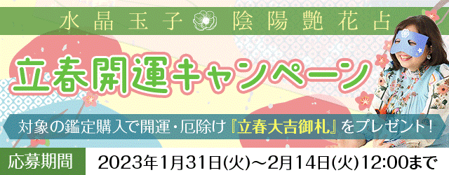 テレビ番組「ゴゴスマ」「ダウンタウンDX」出演で話題の占い師「水晶玉子」が月額公式サイトで、『立春開運キャンペーン』を公開いたしました。
