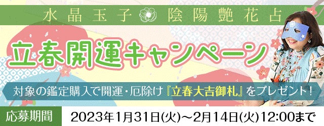 テレシスネットワーク株式会社(本社:東京都港区、代表取締役:鷹石惠充)は、2023年1月31日(火)より、月額公式サイト『水晶玉子 陰陽艶花占』にて『立春開運キャンペーン』を公開いたしました。