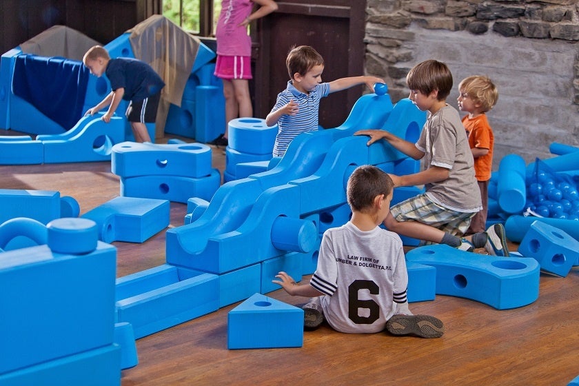新たに導入する「想像ブロック」は、軽く安全な素材でできた様々な形の大きなブロックを、想像力をいっぱいに広げて、組み立て遊びができるアメリカ生まれの遊具です。体を使って楽しく遊びながら、こどもたちの独自性や創造性を養うことができるため、全米のキッズパークでも大変人気となっています。
