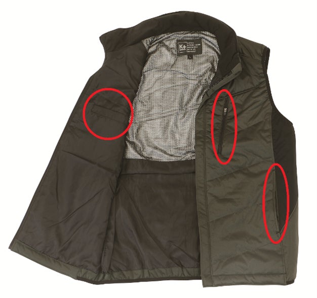 背面の内側はアルミ生地仕様になっており、高い保温性を誇るワークベスト。冬のアクティビティや屋外での作業に最適な商品です。複数の収納ポケット、伸縮性のある素材の使用など機能性に優れております。