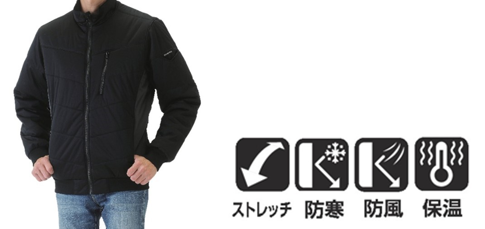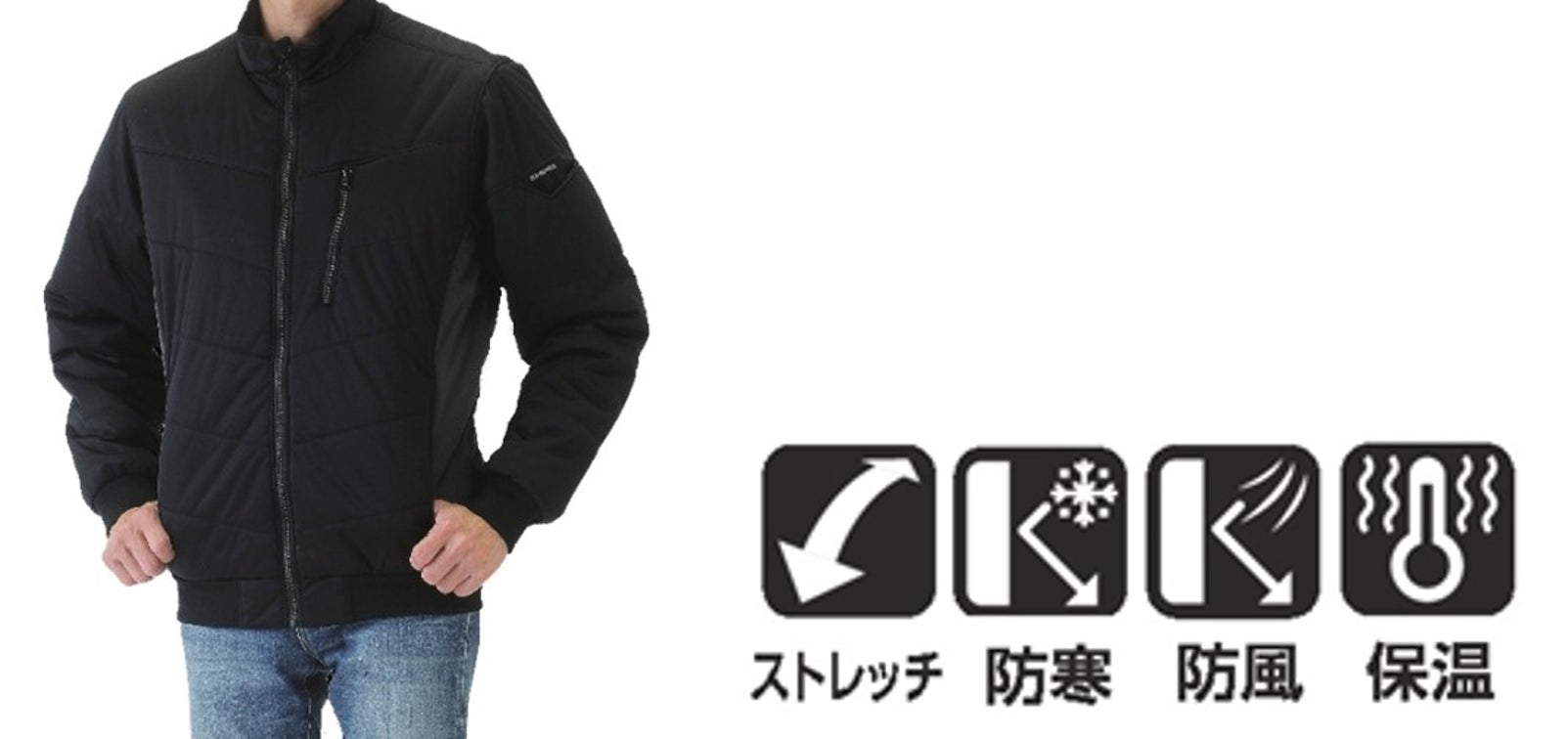 本製品は保温性を担保したまま、素材に伸縮性のある生地を使用することで、動きやすく、冬でも屋外の作業を快適にします。背面の内側はアルミ生地仕様になっており、体から発する熱を利用し、温まる仕組みです。シンプルなデザインで、普段着やスポーツ、アウトドアなど、作業着にとどまらず、様々なシーンで着用することができます。