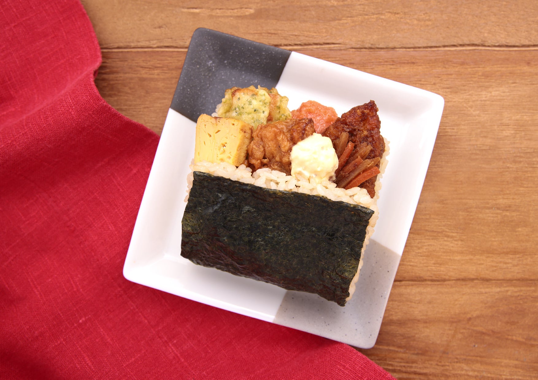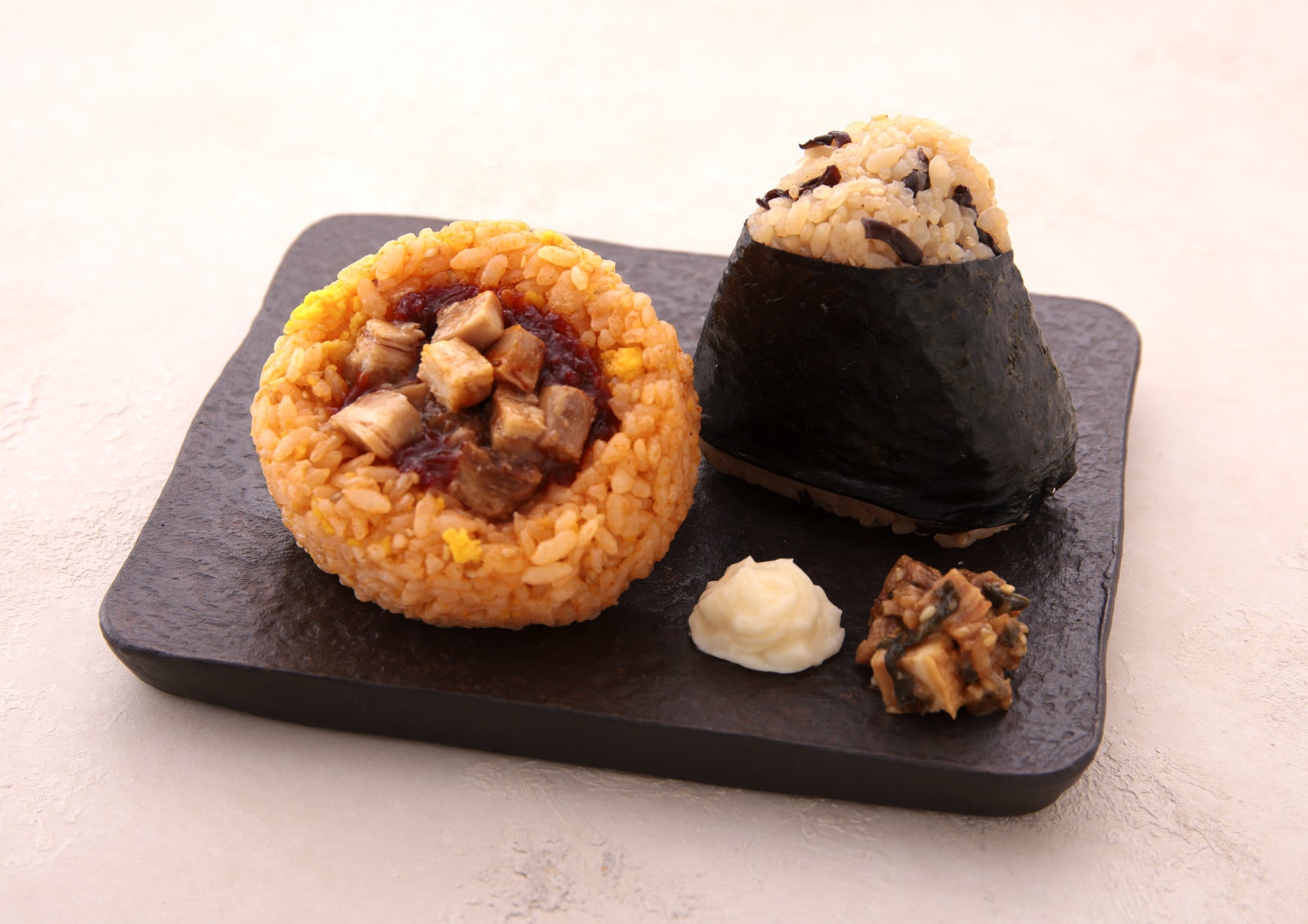 博多一風堂監修の「白丸」風のおにぎりです。濃厚な豚骨スープで炊いたご飯でチャーシューマヨを包みました。豚の旨みに加え、アクセントに高菜と紅しょうがを使用した、やみつきになる味わいです。